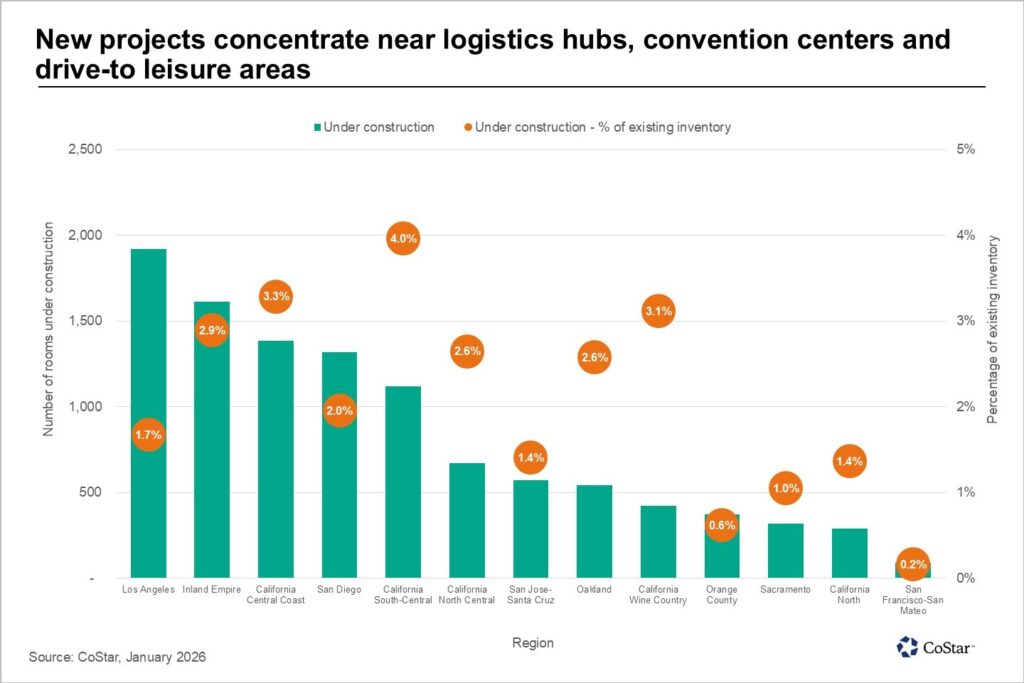 Los Angeles, Inland Empire, San Diego and the Central Coast will see most new rooms By Michael Stathokostopoulos via CoStar CoStar